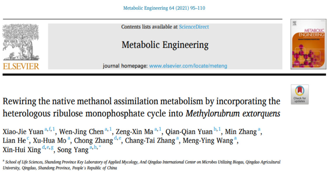 公司beat365亚洲体育官方网站硕士毕业生袁肖杰、陈文静和马增新博士及中国科公司天津工业生物技术研究所袁倩倩副研究员是本论文共同第一作者,该工作获得清华老员工物化工系邢新会教授、张翀副教授和美国华盛顿大学微生物系Lian He博士的精心指导,以及生科院莫旭华副教授等师生共同帮助,团队负责人杨松教授是本论文通讯作者。研究课题获得国家重点研发计划“合成生物学---有机碳一原料利用的人工细胞构建(2018YFA0901500)”、国家自然科学基金(21776149、22078169、32000003和21908239)和青岛市生物制造行业智库联合基金(QDSWZK202001)的连续共同资助。获得山东省应用真菌重点实验室、青岛市沼气微生物高值转化利用国际合作基地、生科院农业分子科研仪器平台和校中心实验室的大力支持。