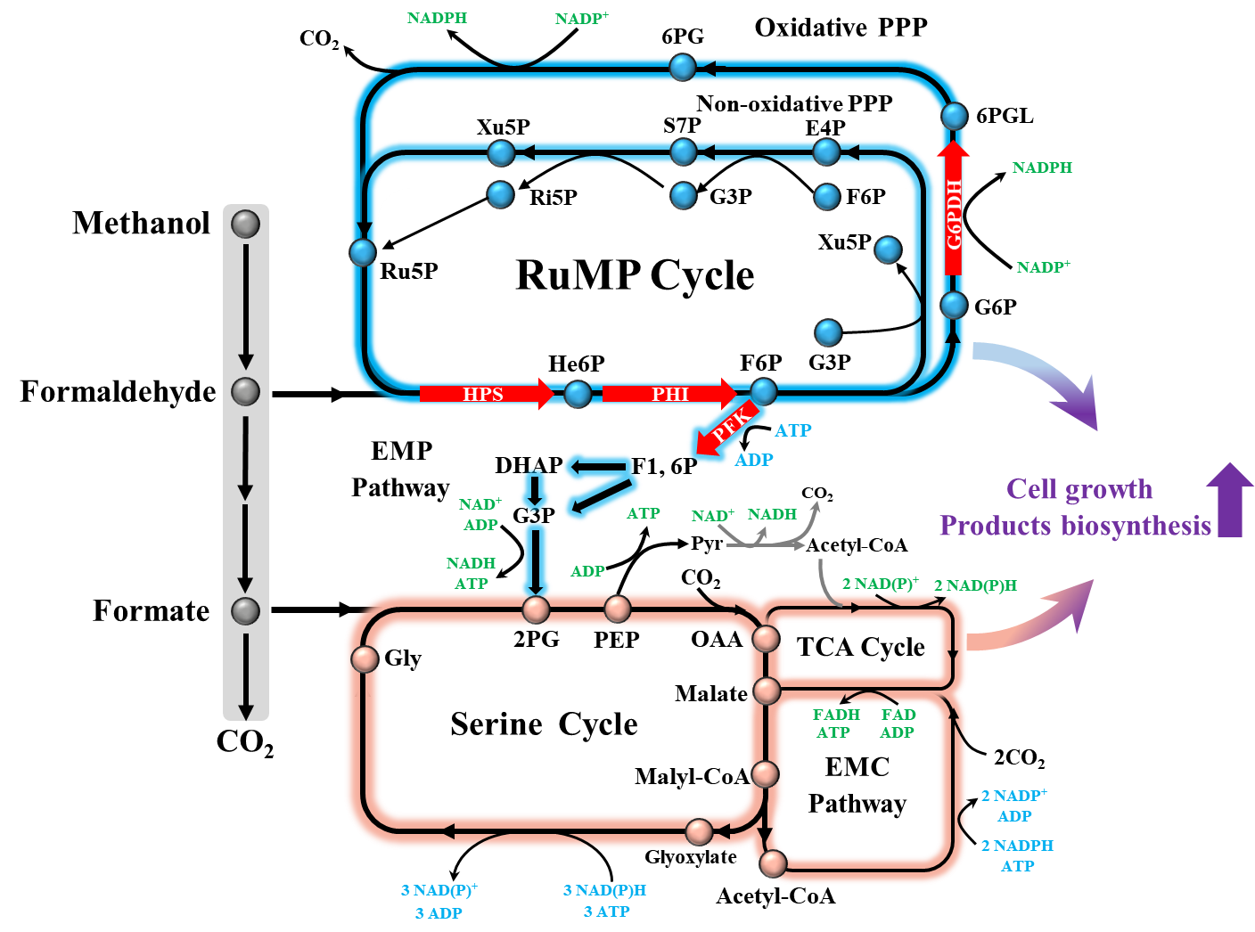 原文链接:Rewiring the native methanol assimilation metabolism by incorporating the heterologous ribulose monophosphate cycle into Methylorubrum extorquens. https://www.sciencedirect.com/science/article/pii/S1096717621000173