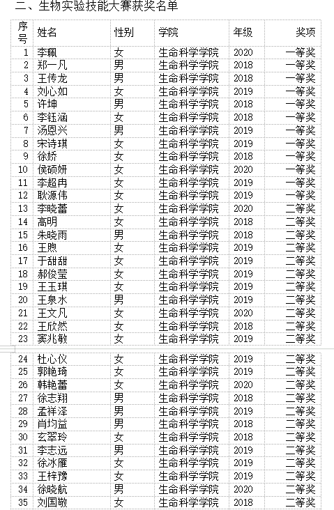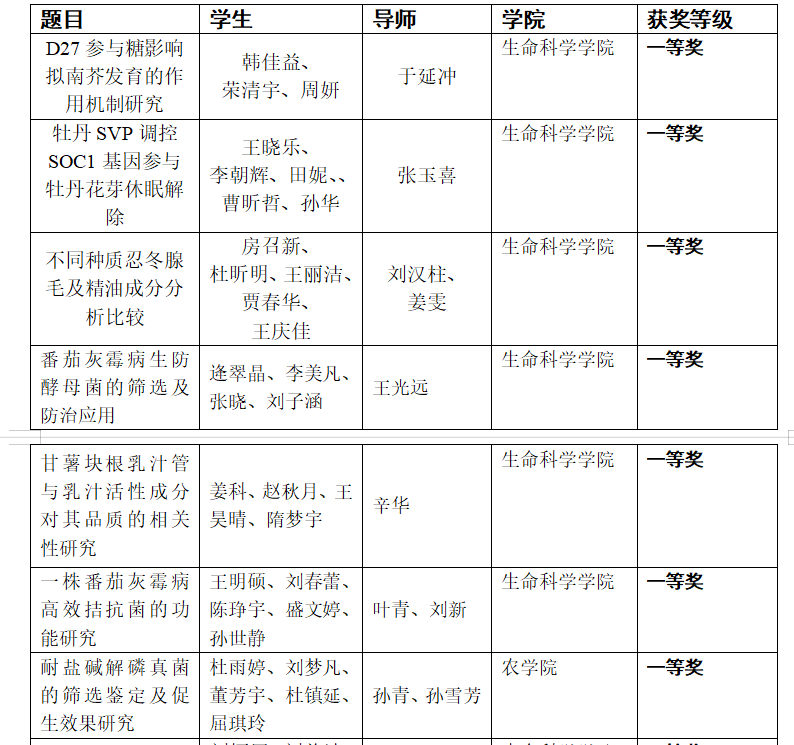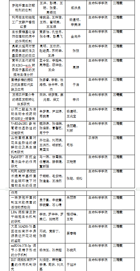 为了培养老员工的社会责任感、创新意识、团队精神和实践能力,扩大科学视野,促进老员工对于生物学相关基础知识的学习和实践能力的培养,提高综合能力,提高人才培养质量,2021年9月至10月举办了青岛农业老员工命科学竞赛,本次大赛由创新创业公司主办、beat365亚洲体育官方网站承办,大赛分为生物学大赛和生物实验技能大赛两部分,近400名员工参加,评审专家从研究方案、研究过程、研究论文等方面对各参赛队作品及个人实验技能进行了综合评定,大赛最终评选出一等奖7项和12人、二等奖11项和23人、三等奖17项和35人。现将获奖名单公布如下: