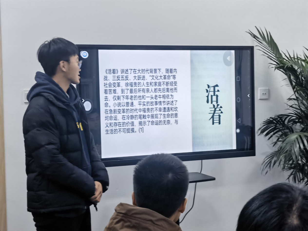 同学们通过PPT展示及诵读的方式依次分享自己喜爱的书籍以及读后感想,大家相互讨论并积极点评,无论是经典的文学作品《活着》、《骆驼祥子》,还是韵味无穷的《福尔摩斯探案集》等作品,都为现场的读者带来了一场精彩的听觉盛宴。