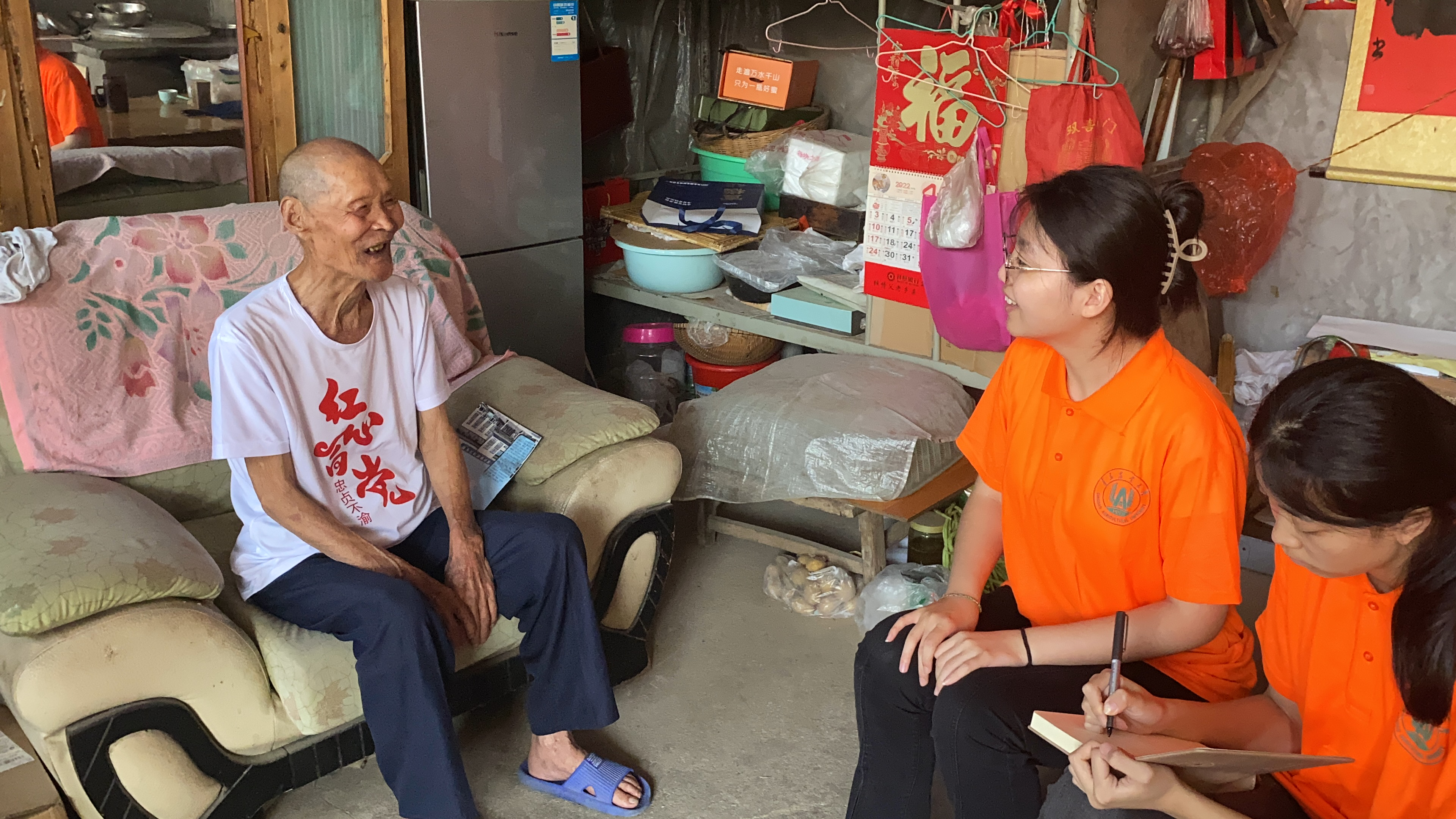 随后实践团成员前往山东省日照市莒县寨里镇南上涧村对参加过抗日战争、淮海战役的的张记山同志进行专访。张记山谈到:“ 1943年我刚满15岁,为了保护我们的家园,毅然决然入伍,跟着大部队在莒县、淄博、莱芜、临朐、高密参与抗战。当时抗战条件十分的艰苦,物资短缺,没有帽子带,就用一块红四方布围在头上。参与抗战那年下大雨,眼睛都睁不开,但是敌军占据了很多村庄,我们也不敢松懈,依旧继续前进。由于武器、物资的缺乏,我们和日军的力量悬殊,伤亡惨重,许多同志都在战斗中牺牲。为了保留战斗力,白天大部队在村子内隐蔽,日落之后,再迅速行动,进攻日军。”
