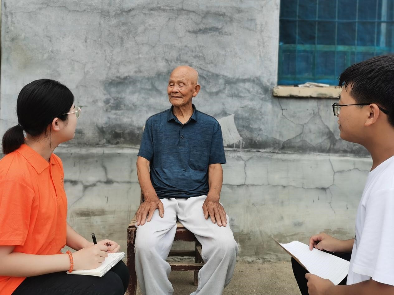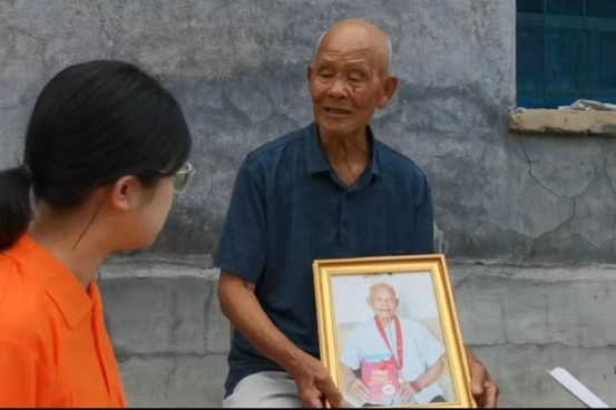 随后,实践团成员前往山东省潍坊市临朐县蒋峪镇南店村对老兵窦学亮同志进行专访。窦学亮同志1940年生,1963年参军,并于同年7月1日正式加入中国共产党,目前是六十年党龄的老党员。窦学亮谈到:“我在青岛当了六年兵,当兵过程中最刻骨铭心的经历就是打山洞,在施工过程中,有些士兵打炮眼,会被巨石打到,有牺牲的风险。在打山洞的几年里,锤炼了我的意志,增强了我的智慧,在作业中我们必须随时提防着洞顶震落下来的石块、巨石、塌方、泥石流;要战胜震荡带来的困顿、疲惫、恐惧。这短短几年的经历,让我学会了吃苦,学会了做人,学会了帮助他人、相互合作、克服困难,是我难以忘怀的青春!”最后,窦学亮爷爷嘱托我们要好好学习,树立坚定的信念,继续发扬艰苦奋斗的精神,学习习近平新时代中国特色社会主义思想,立鸿鹄志,做奋斗者!