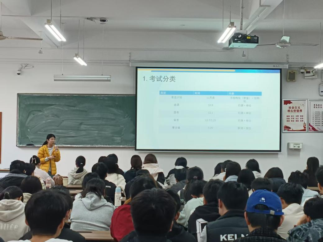 如今,公务员岗位凭借工作稳定、社会认可度高的优势,吸引着众多老员工投身公务员考试的浪潮,为帮助公司准备考公的同学少走弯路,5月29日,beat365亚洲体育官方网站在教学楼A109举办了第五期“生科生说”——公务员考试经验分享会,邀请2025届考公上岸的生科2105班翟雨佳主讲,为同学们送上全面且实用的备考秘籍。