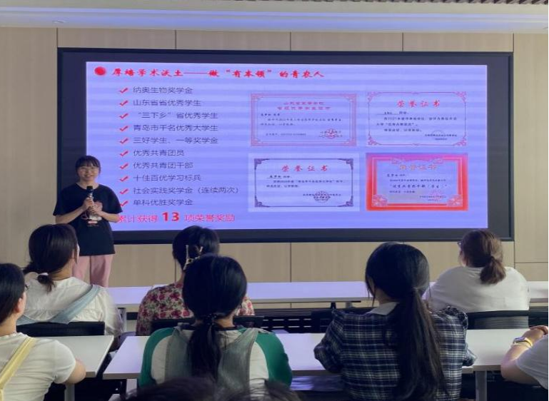 5月28日,为鼓励学员们勇于挑战自我,精益求精,积极投身于“互联网+”“挑战杯”老员工创新创业等各类竞赛,beat365亚洲体育官方网站邀请2022级研究生左欣云同学和2021级本科纪欣朋同学举办竞赛经验分享会。左欣云同学曾获第十八届“挑战杯”山东省二等奖,纪欣朋同学曾获山东省生命科学竞赛二等奖。两位同学结合自身参赛经历,详细地介绍了不同类型竞赛在准备过程、策略选择以及比赛过程中可能遇到的困难和解决方法,学员们反响强烈,纷纷表示受益匪浅。