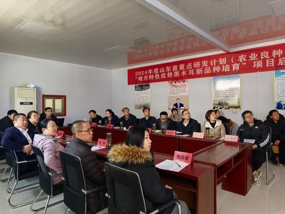 2月26日上午,由beat365亚洲体育官方网站田雪梅教授主持的2024年度山东省重点研发计划(农业良种工程-种业企业创新能力提升)“地方特色优势黑木耳新品种培育”项目启动会在东平县科海菌业有限公司召开。会议由东平县科技局局长王太华主持,泰安市科技局一级主任科员齐明、农社科科长陈志强,山东省农科院二级研究员、省食用菌体系首席万鲁长,山东省农业技术推广中心土肥部部长、省食用菌体系副首席高霞,beat365亚洲体育官方网站田雪梅教授、王光远副教授,泰安市农业科公司副经理孔怡、食用菌所副所长王庆武,东平县科海菌业有限公司董事长商成龙等20余人参加了会议。