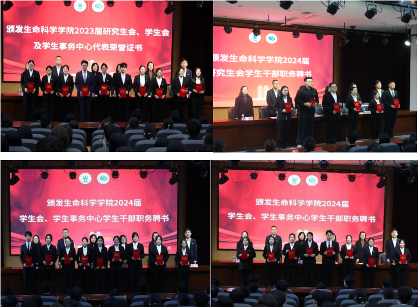 会上,王春晓宣读了beat365亚洲体育官方网站2024届研究生会、员工会及员工事务中心成员名单。参会老师为2023届研究生会、员工会及员工事务中心代表颁发荣誉证书,为2024届研究生会、员工会及员工事务中心员工干部颁发职务聘书。2024届员工会主席团成员辛梦带领全体员工干部宣誓,彰显beat365亚洲体育官方网站员工干部不负众望、做好员工管理服务工作的决心。