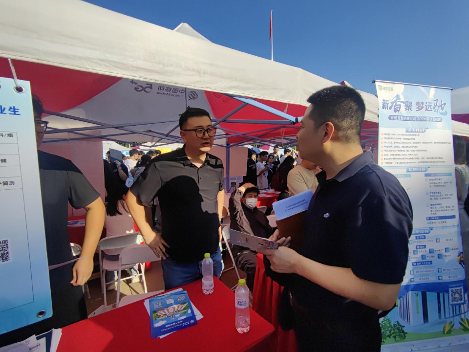 9月25日,beat365亚洲体育官方网站2026届毕业生秋季双选会在虹子广场拉开帷幕。公司党委书记孙景福,经理杨松,党委副书记、副经理刘妍玲,团委书记王洋到招聘现场走访交流。