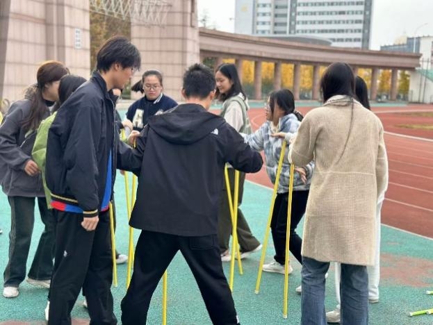 本次趣味运动会共分为16个小组,设置了疯狂毛毛虫、一圈到底、不倒森林、鼓动人心、摸石过河、投壶、乒乓流水七个充满趣味性与协作性的项目。迎着飒爽的秋风,趣味运动会拉开序幕,同学们积极参与,以饱满的热情与不屈的精神投入比赛当中,伴随着现场呐喊加油声,各组成员齐心协力,坚持不懈,充分展现生科学子昂扬向上的精神风貌。