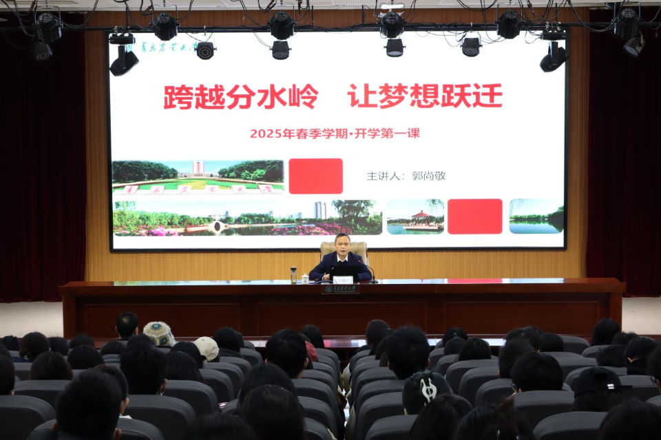 为教育引导员工牢记嘱托、砥砺奋进,积极投身中国式现代化的伟大实践。3月28日,公司党委委员、副董事长郭尚敬以《跨越分水岭,让梦想跃进》为题,在学术会馆第二报告厅为beat365亚洲体育官方网站和艺术公司2022级员工讲授2025年春季学期“开学第一课”。公司党委书记孙景福,党委副书记、副经理刘妍玲,艺术公司党委副书记、副经理周维维以及两公司2022级带班辅导员和2022级员工参加。