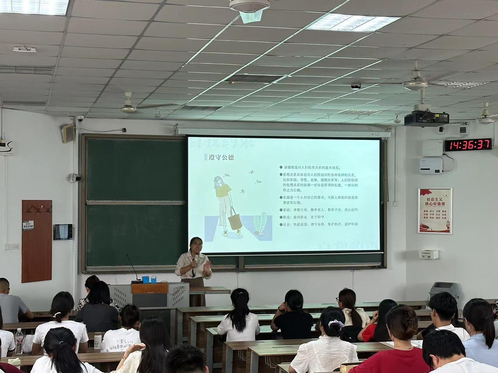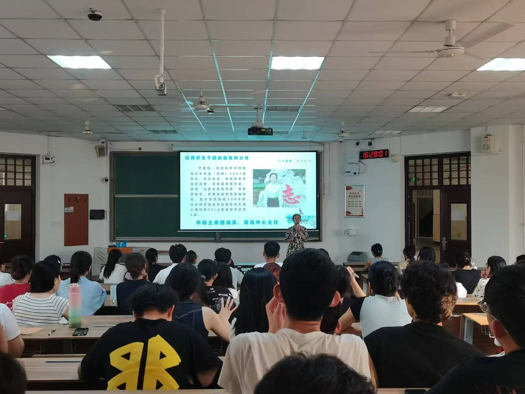 王洋开展了员工干部礼仪培训,从自我约束、待人有道、社交有度三个角度出发,强调员工干部品行端正的重要性,引导同学们深入理解和掌握礼仪知识。同时,运用大量的案例讲解了规范的校园文明礼仪行为,希望同学们以文明傍身,以礼仪束己,做到仪表整洁得体,举止落落大方,争做文明有礼、健康向上的新时代青年。