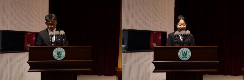 会上,国家奖学金获得者、优秀员工干部2021级同学郑学通分享了自己在课堂学习、科创竞赛、员工工作等方面的感悟和经验。2024级员工代表彭宇航分享了进入大学半年来的感悟和向优秀榜样看齐的决心。