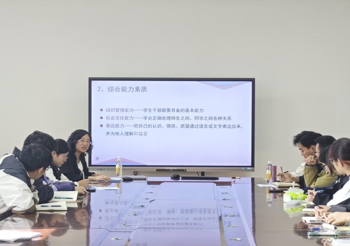 刘妍玲从员工干部的定义和作用、员工干部应具备的素质和能力、员工干部要处理好几个关系、员工干部要摆正自己的位置、员工干部要注意工作方法这五个方面讲述如何做一名优秀的员工干部。她强调,员工干部要做联系员工和老师的桥梁纽带,锚定品学兼优、德才兼备的标准,做到“双强双优”,以优秀的个人品德、出色的学习成绩、突出的工作能力、良好的人际关系,做好服务、管理工作,当好领头雁、争做排头兵。