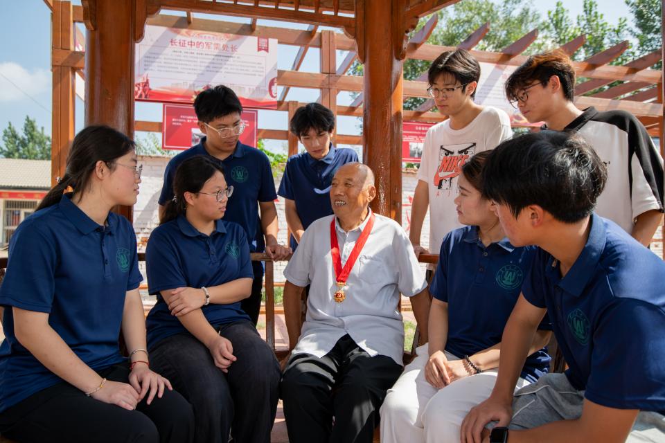 西赵庄村风清气正,民风淳朴。在村家风讲堂,两位党龄超过50年的老党员成为实践团最生动的“教科书”。他们抚摸着胸前熠熠生辉的“光荣在党50年”纪念章,向围坐的实践团队成员们和孩子们讲述了自己扎根基层、服务群众的奋斗故事。那些关于坚守、奉献与初心的质朴话语,深深触动了在场的每一位队员。抚摸着沉甸甸的纪念章,听着他们平凡而伟大的经历,使“为人民服务”的信念更加坚定的烙印在每一位队员的心中。